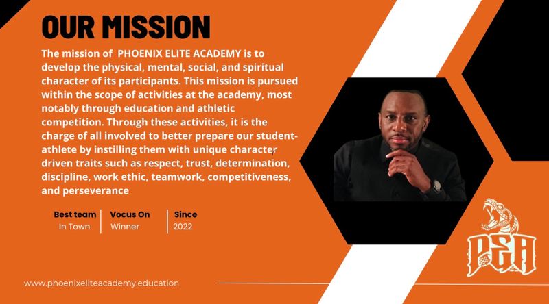 The mission of the athletic program at PHOENIX ELITE ACADEMY is to develop the physical, mental, social, and spiritual character of its student-athlete. This mission is pursued within the scope of activities at the academy, most notably through athletic competition. Through these activities, it is the charge of all involved to better prepare our student-athlete by instilling them with unique character driven traits such as respect, trust, determination, discipline, work ethic, teamwork, competitiveness, and perseverance.